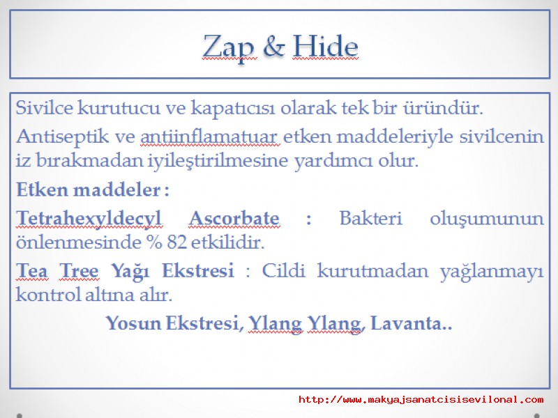 | | | JANE IREDALE | | ZAP & HIDE / SİVİLCE KURUTUCU VE KAPATACISI MÜKEMMEL ÜRÜN İKİSİ BİRARADA ÜRÜN. |