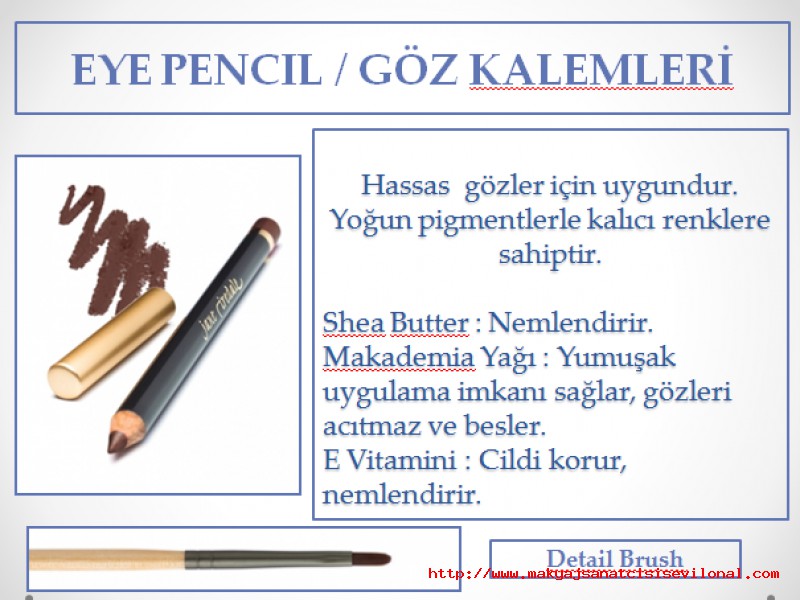 | | | JANE IREDALE | | EYE PENCIL / FARKLI TON SEÇENEKLERİ GÖZ KALEMLERİMİZDE BULUNMAKTADIR. |