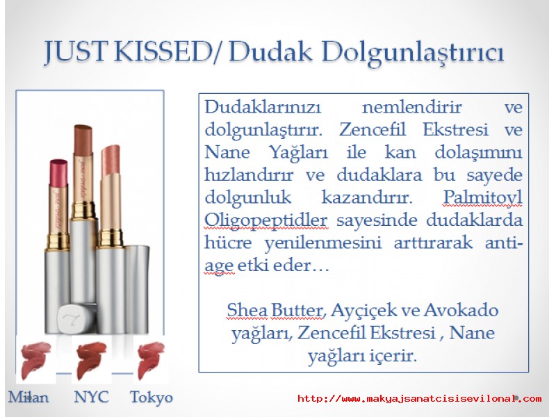 | | JANE IREDALE | | RENKLİ / BAKIMLI / SAĞLIKLI DUDAKLAR. KURŞUN İÇERMEYEN DUDAK ÜRÜNLERİ |