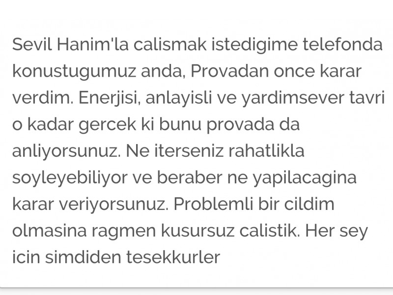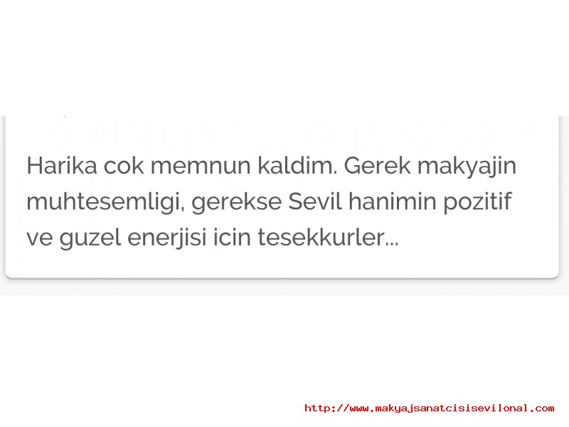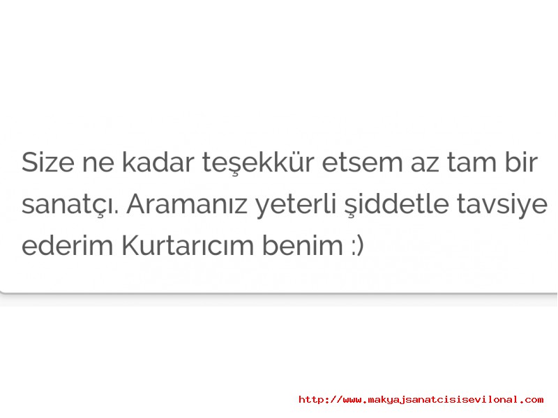 | | | | | Gelinlerimden Yorumlar | | Sevgili gelinime teşekkür ederim. 22.09.2015 |